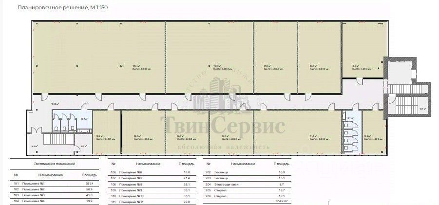 Общая площадь от 18,8 кв.м. до 875 кв.м.