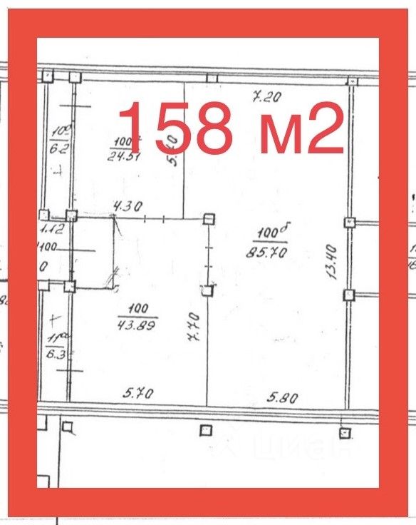 - 158 м² ( 1-й этаж, три комнаты, санузел )