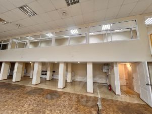 Просторное помещение первого этажа, подсобные помещения, санузел и офисные помещения балконного типа на втором (навесном) этаже.