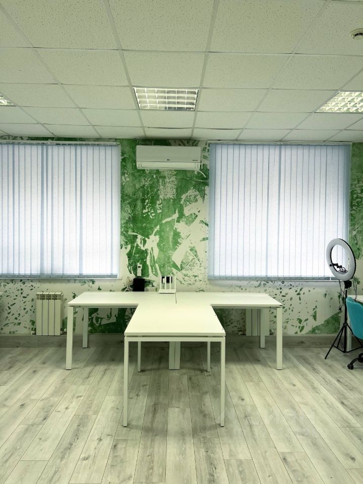 Мебель и оборудование: офис сдается с новой мебелью — 12 белых рабочих столов, стол руководителя из дерева, шкафы для верхней одежды и вещей.