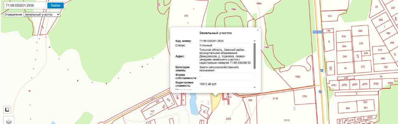 право заключения договора аренды земельного участка из земель сельскохозяйственного назначения с кадастровым номером 71:09:030201:2936, площадью 6785 кв. м, местоположение: Тульская область, Заокский район, муниципальное образование Демидовское, д. Ушаковка, северо-западнее земельного участка с кадастровым номером 71:09:030208:52, вид разрешенного использования: растениеводство