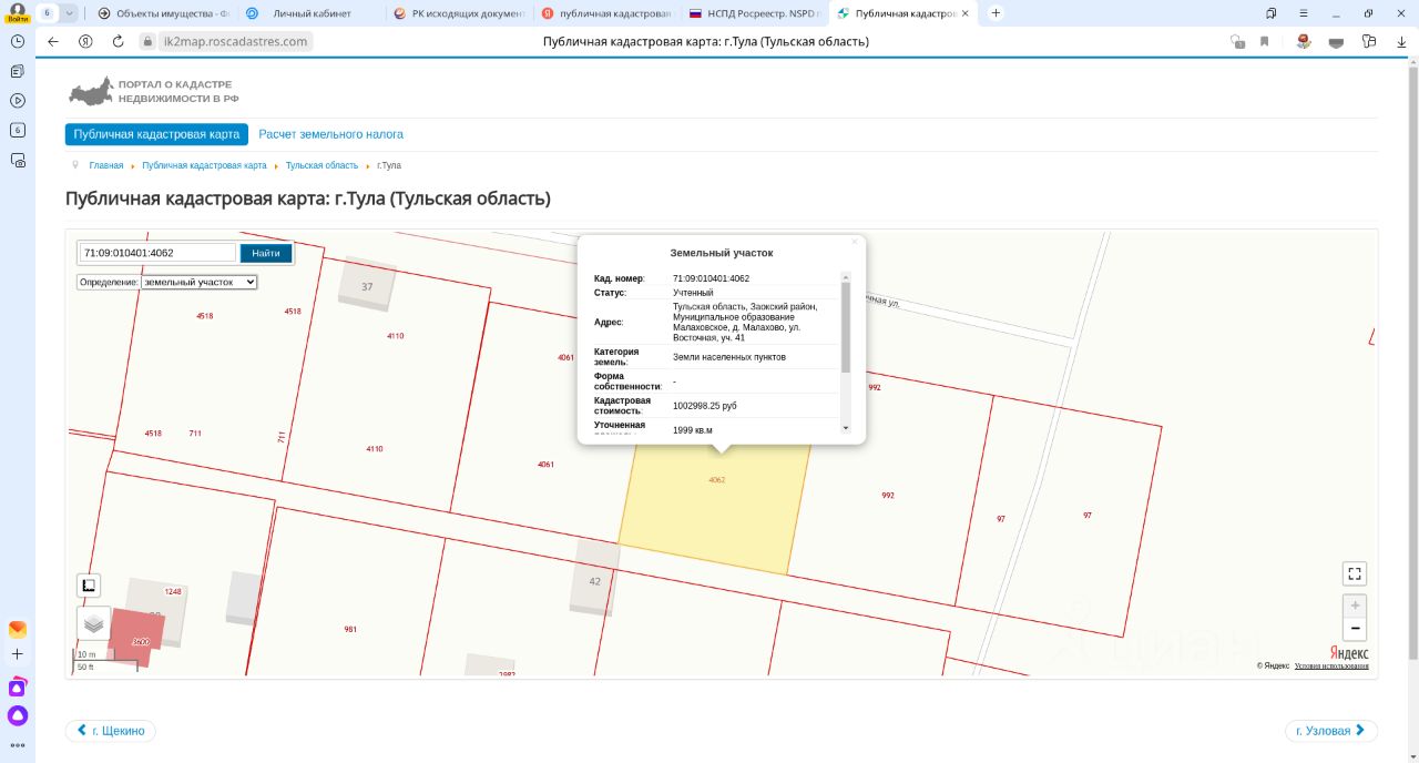 право заключения договора аренды земельного участка из земель населенных пунктов с кадастровым номером 71:09:010401:4062 площадью 1999 кв. м, адрес: Тульская область, Заокский район, муниципальное образование Малаховское, д. Малахово, ул. Восточная, уч. 41, вид разрешенного использования: для ведения личного подсобного хозяйства.