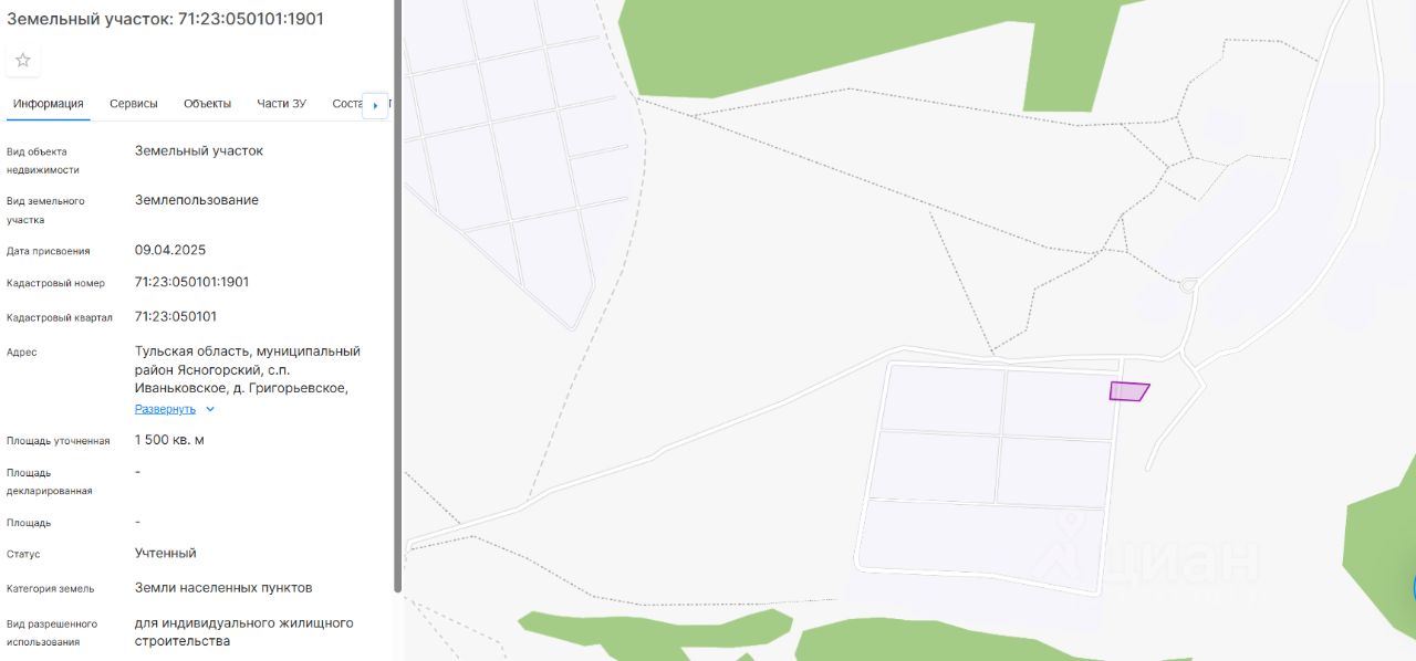 право заключения договора аренды земельного участка из земель населенных пунктов с кадастровым номером 71:23:050101:1901, площадь 1500 кв. м, местоположение: Тульская область, муниципальный район Ясногорский, с.п. Иваньковское, д. Григорьевское, южнее земельного участка с кадастровым номером 71:23:050101:232, вид разрешенного использования: для индивидуального жилищного строительства