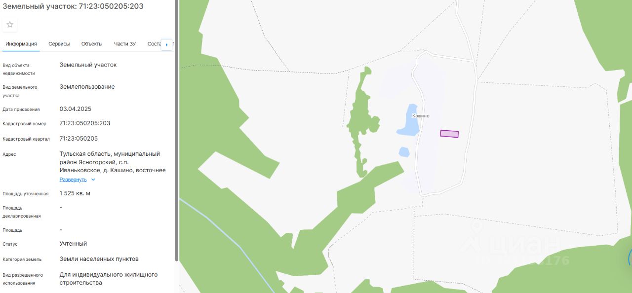 право заключения договора аренды земельного участка из земель населенных пунктов с кадастровым номером 71:23:050205:203, площадь 1525 кв. м, местоположение: Российская Федерация, Тульская область, муниципальный район Ясногорский, с.п. Иваньковское, д. Кашино, восточнее земельного участка с кадастровым номером 71:23:050205:18, вид разрешенного использования: для индивидуального жилищного строительства