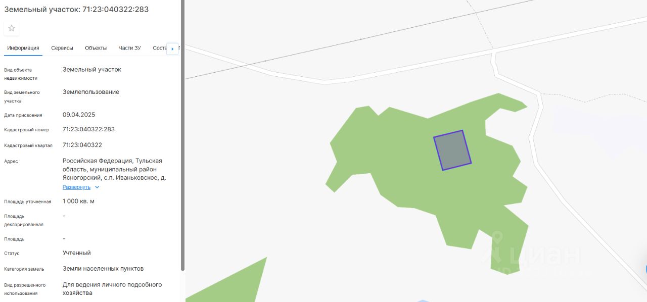 право заключения договора аренды земельного участка из земель населенных пунктов с кадастровым номером 71:23:040322:283, площадь 1000 кв. м, местоположение: Тульская область, муниципальный район Ясногорский, с.п. Иваньковское, д. Тепловка, западнее земельного участка с кадастровым номером 71:23:040322:26, вид разрешенного использования: для ведения личного подсобного хозяйства