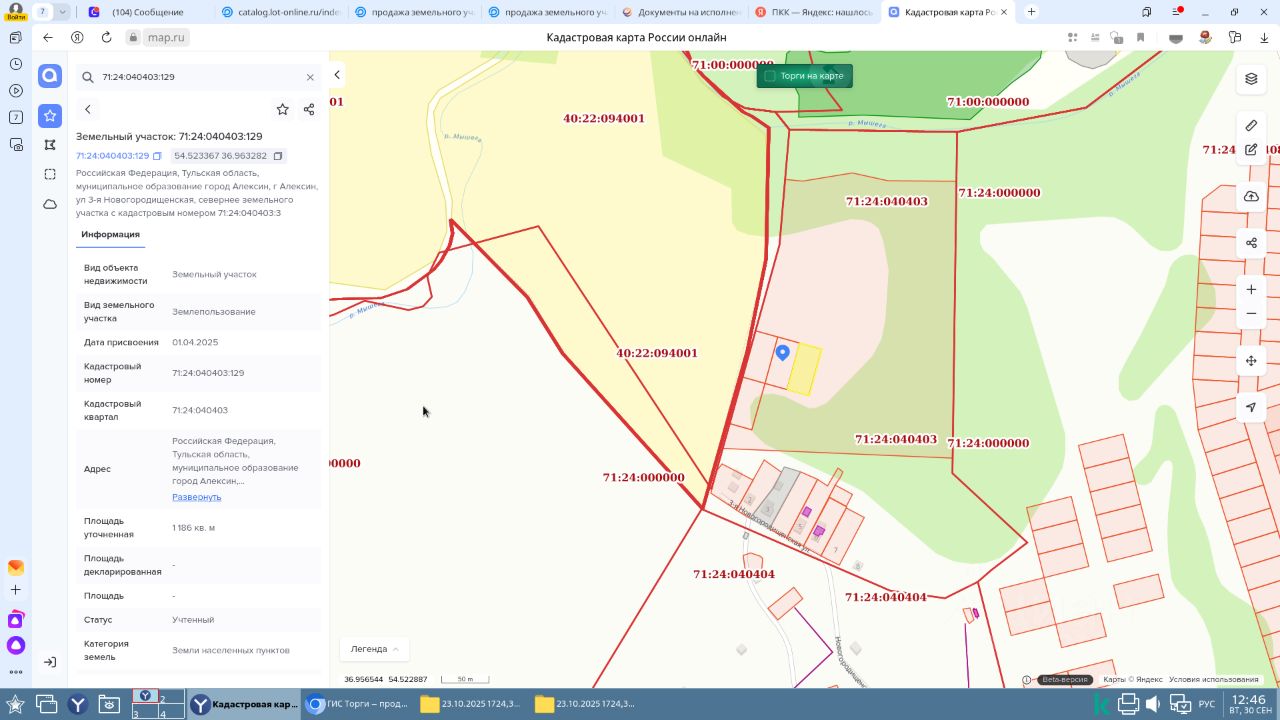 право заключения договора аренды земельного участка из земель населенных пунктов с кадастровым номером 71:24:040403:129, площадь 1186 кв. м, местоположение: Российская Федерация, Тульская область, муниципальное образование город Алексин, г. Алексиин, ул. 3 — я Новогородищенская, севернее земельного участка с кадастровым номером 71:24:040403:3, вид разрешенного использования: для индивидуального жилищного строительства.