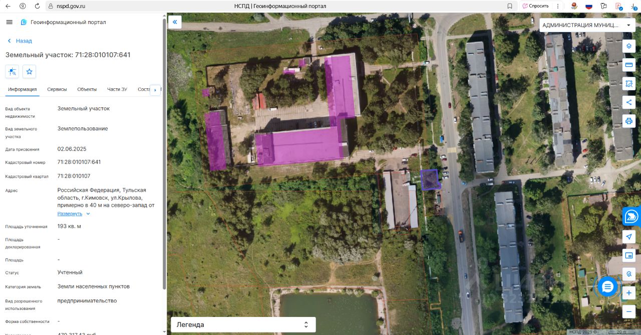 Земельный участок с кадастровым номером 71:28:010107:641 площадь 193 по адресу Российская Федерация, Тульская область, г.Кимовск, ул.Крылова, примерно в 40 м на северо-запад от дома 8