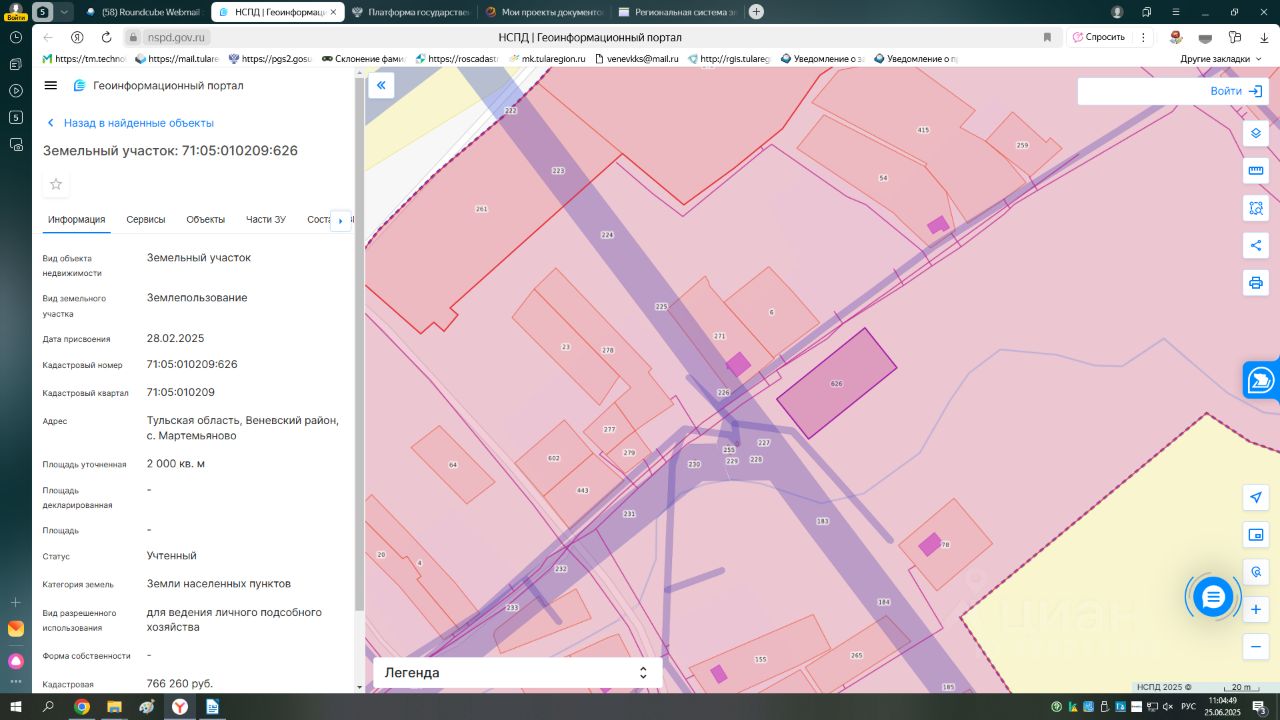 Земельный участок с кадастровым номером 71:05:010209:626 площадь 2000
