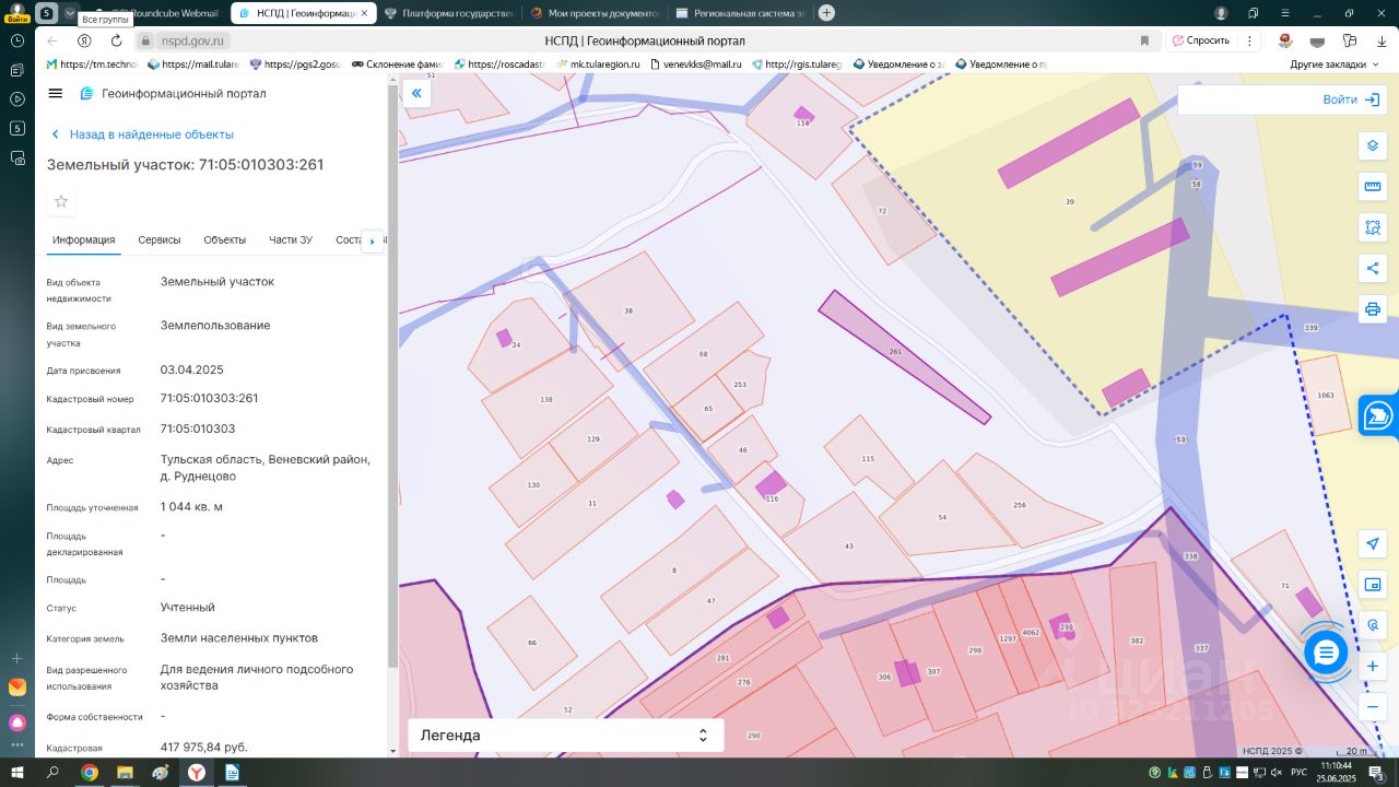 Земельный участок с кадастровым номером 71:05:010303:261 площадь 1044