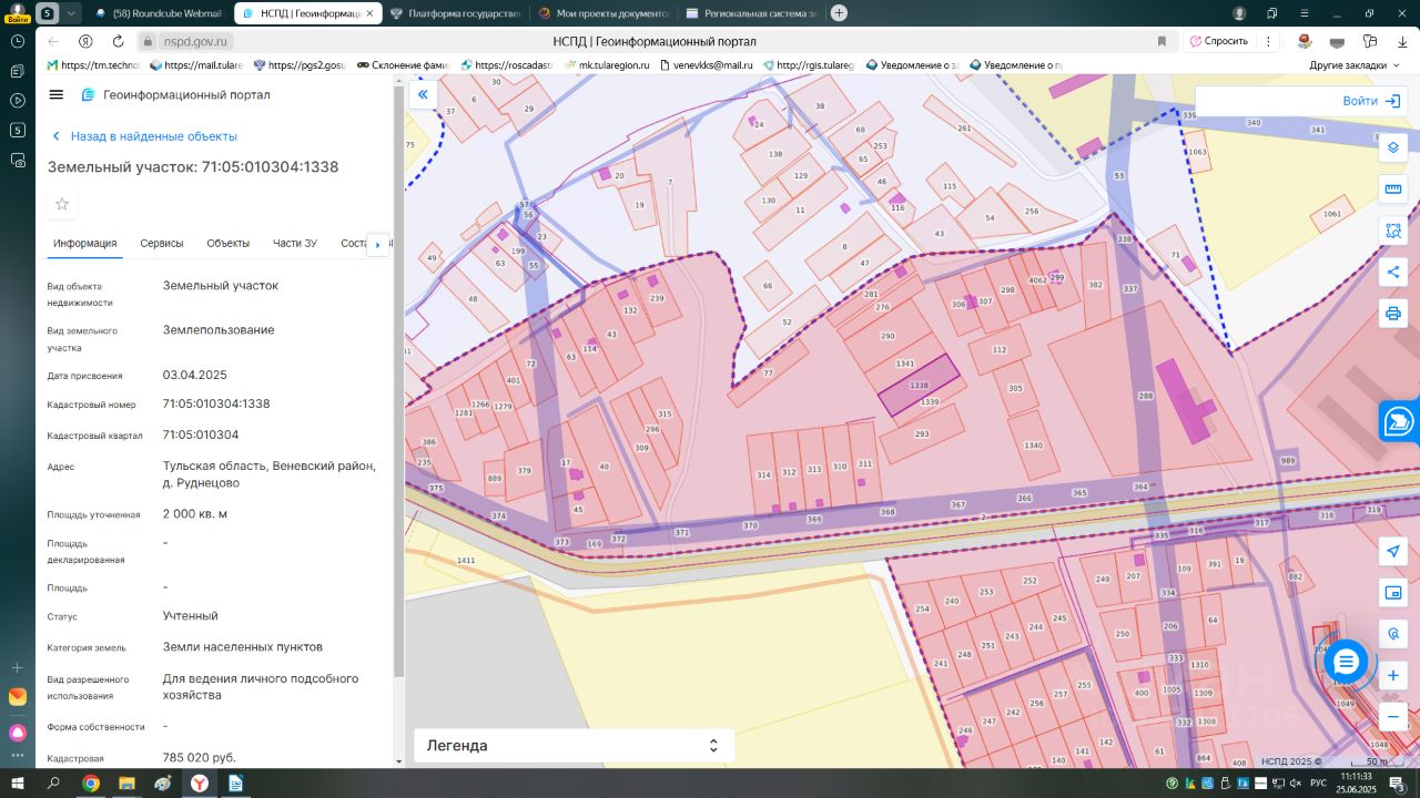 Земельный участок с кадастровым номером 71:05:010304:1338 площадь 2000