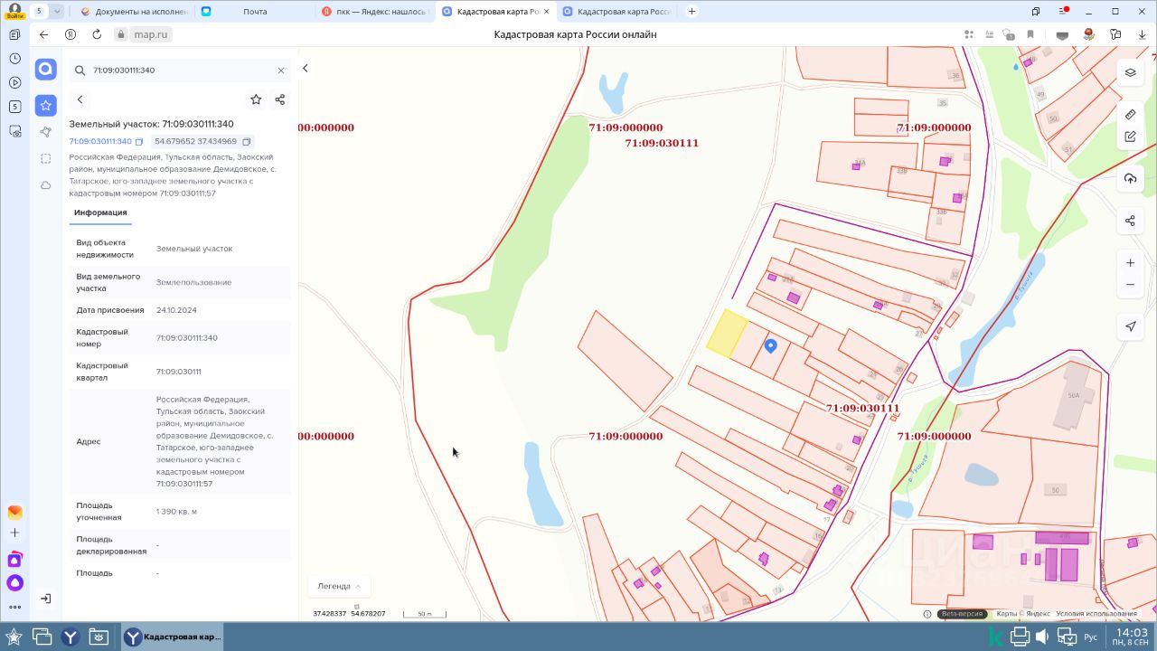 право заключения договора аренды земельного участка из земель населенных пунктов с кадастровым номером 71:09:030111:340, площадь 1390 кв. м, местоположение: Российская Федерация, Тульская область, Заокский район, муниципальное образование Демидовское, с. Татарское, юго — западнее земельного участка с кадастровым номером 71:09:030111:57, вид разрешенного использования: для ведения личного подсобного хозяйства (приусадебный земельный участок).