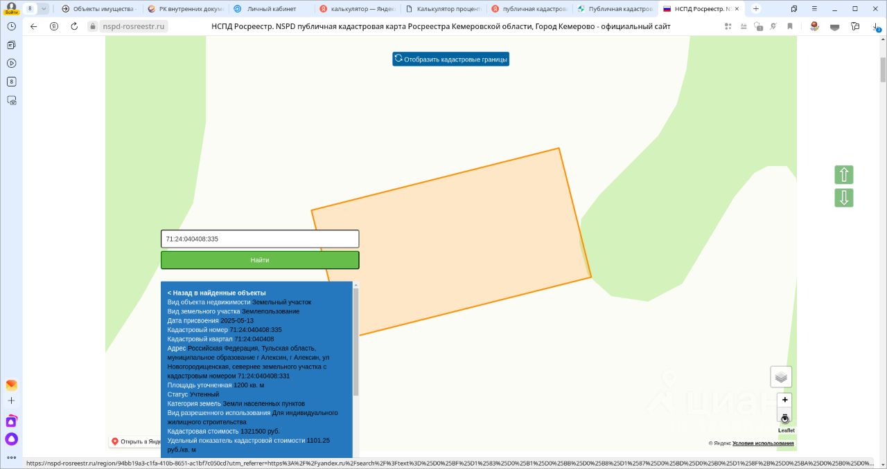 право заключения договора аренды земельного участка из земель населенных пунктов с кадастровым номером 71:24:040408:335, площадью 1200 кв.м, местоположение: Российская Федерация, Тульская область, муниципальное образование г. Алексин, г. Алексин, ул. Новогородищенская, севернее земельного участка с кадастровым номером 71:24:040408:331, вид разрешенного использования: для индивидуального  жилищного строительства.