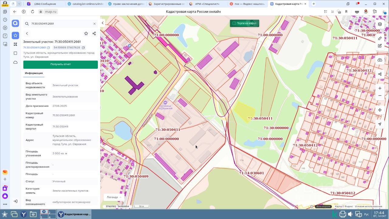 право заключения договора аренды земельного участка из земель населенных пунктов с кадастровым номером 71:30:050411:2661, площадью 3000 кв.м, местоположение: Тульская область, муниципальное образование г. Тула, ул. Овражная, вид разрешенного использования: амбулаторное ветеринарное обслуживание.