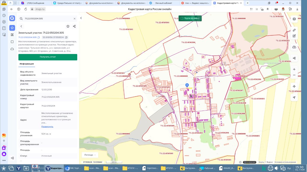 право заключения договора аренды земельного участка, находящегосяв собственности Тульской области, из категории земель населённых пунктовс кадастровым номером 71:22:050204:305, площадь: 524 кв. м, местоположение: местоположение установлено относительно ориентира, расположенного в границах участка. Почтовый адрес ориентира: Тульская область, р-н Щекинский, р.п. Огаревка,МО р.п.Огаревка, ул. Советская, д. 31-а, с видом разрешенного использования "Служебные гаражи, склады".