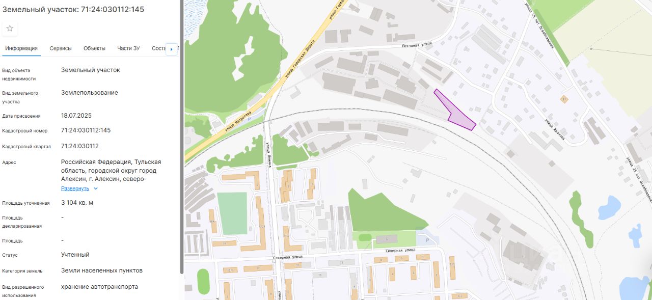 право заключения договора аренды земельного участка из земель населенных пунктов с кадастровым номером 71:24:030112:145, площадью 3104 кв.м, местоположение: Российская Федерация, Тульская область, городской округ город Алексин, г. Алексин, северо-восточнее земельного участка с кадастровым номером 71:24:000000:1443, вид разрешенного использования: хранение автотранспорта