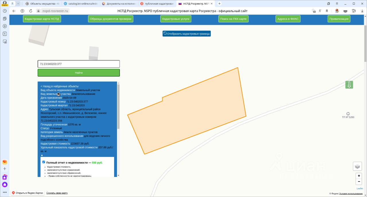 право заключения договора аренды земельного участка из земель населенных пунктов с кадастровым номером 71:23:040203:377 площадью 1076 кв. м, адрес: Тульская область, муниципальный район Ясногорский, с.п. Иваньковское, д. Вележево, южнее земельного участка с кадастровым номером 71:23:040203:356, вид разрешенного использования: для ведения личного подсобного хозяйства.