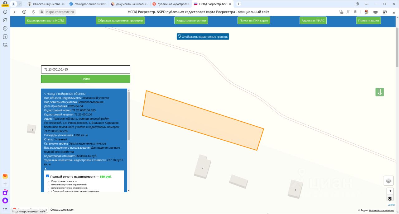 право заключения договора аренды земельного участка из земель населенных пунктов с кадастровым номером 71:23:050106:485 площадью 1994 кв. м, адрес: Тульская область, муниципальный район Ясногорский, с.п. Иваньковское, с. Большое Хорошово, восточнее земельного участка с кадастровым номером 71:23:050106:226, вид разрешенного использования: для ведения личного подсобного хозяйства.