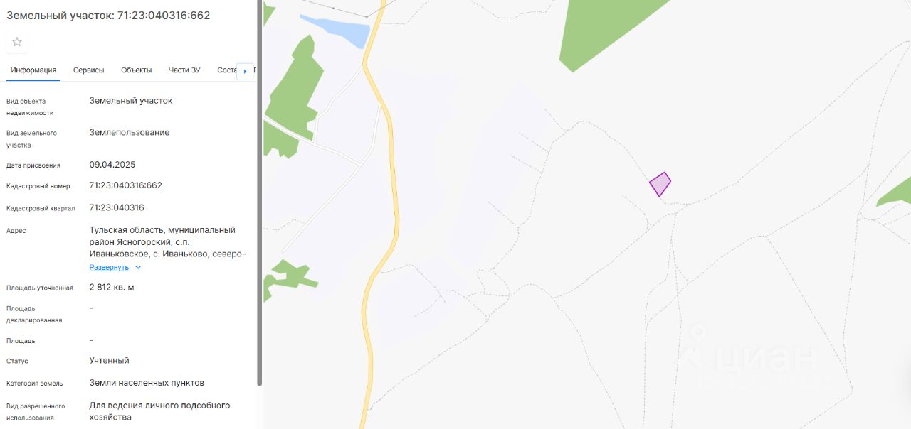 право заключения договора аренды земельного участка из земель населенных пунктов с кадастровым номером 71:23:040316:662, площадь 2812 кв. м, местоположение: Тульская область, муниципальный район Ясногорский, с.п. Иваньковское, с. Иваньково, северо-восточнее земельного участка с кадастровым номером 71:23:040305:719, вид разрешенного использования: для ведения личного подсобного хозяйства