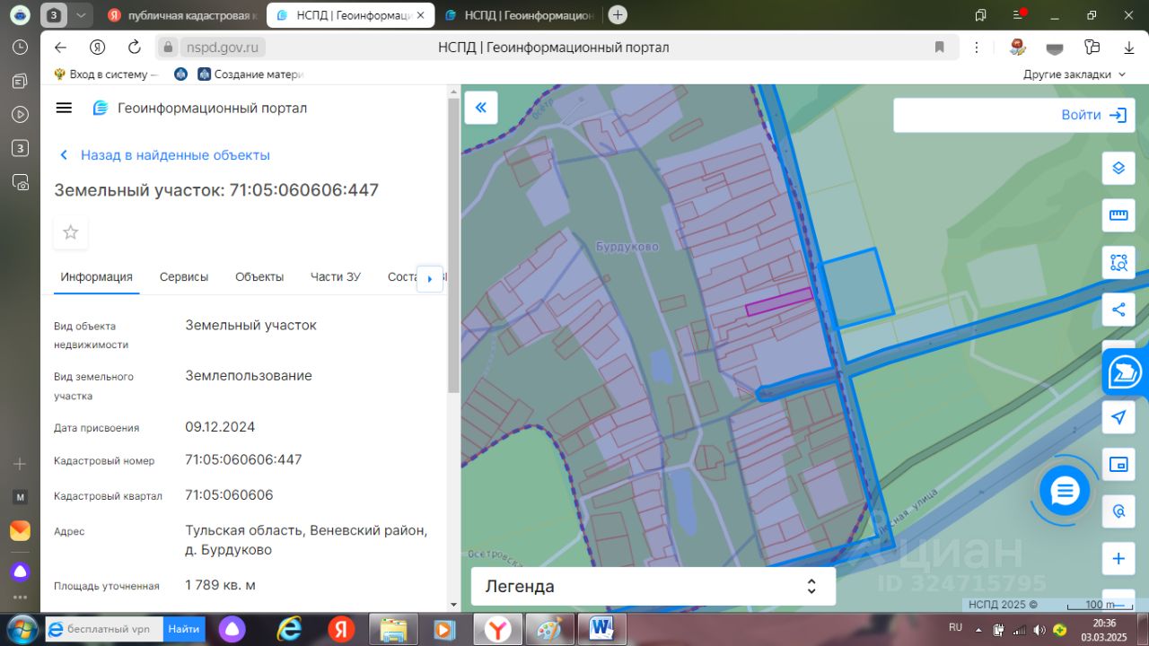 Земельный участок с кадастровым номером 71:05:060606:447 площадь 1789 по адресу Тульская область, Веневский район