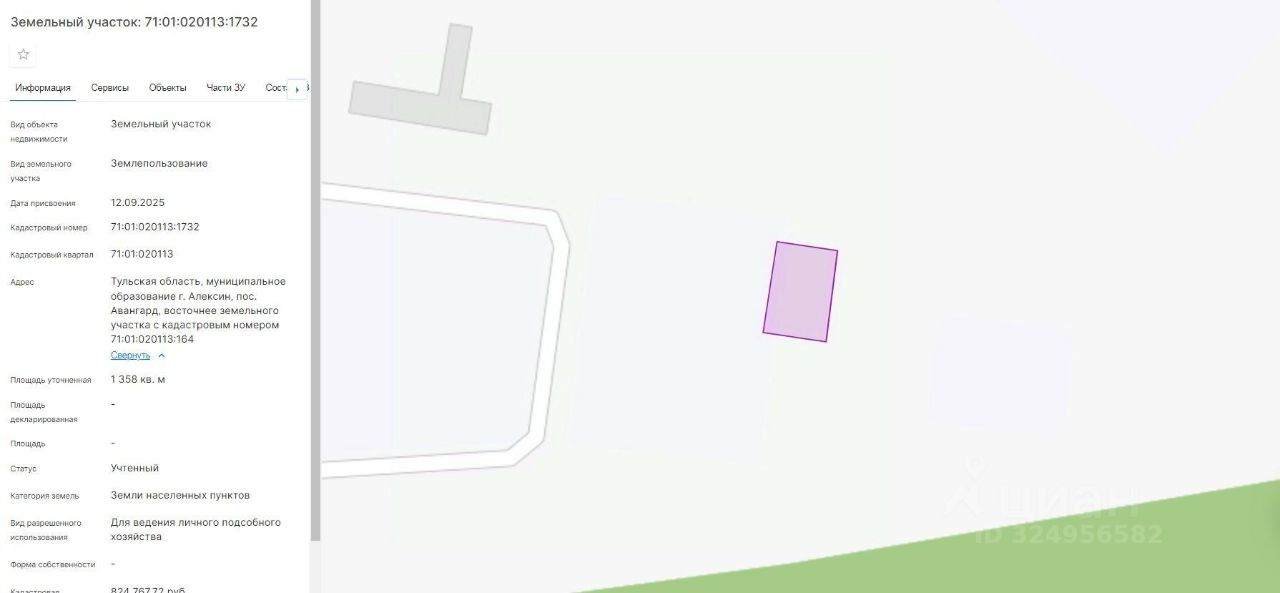 право заключения договора аренды земельного участка из земель населенных пунктов с кадастровым номером 71:01:020113:1732 площадью 1358 кв. м, адрес: Тульская область, МО г. Алексин, пос. Авангард, восточнее земельного участка с кадастровым номером 71:01:020113:164, вид разрешенного использования: для ведения личного подсобного хозяйства.