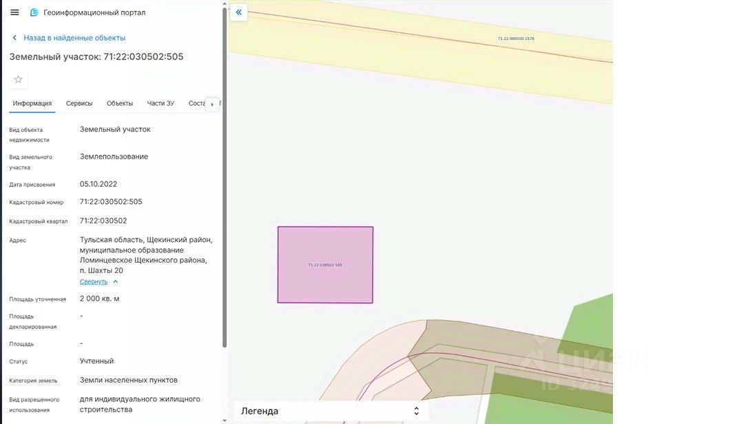 площадью 2000 кв.м, с кадастровым номером 71:22:030502:505, категория земель "Земли населенных пунктов", местоположение земельного участка: Тульская область, Щекинский район, муниципальное образование Ломинцевское Щекинского района, п. Шахты 20, с разрешенным использованием для индивидуального жилищного строительства