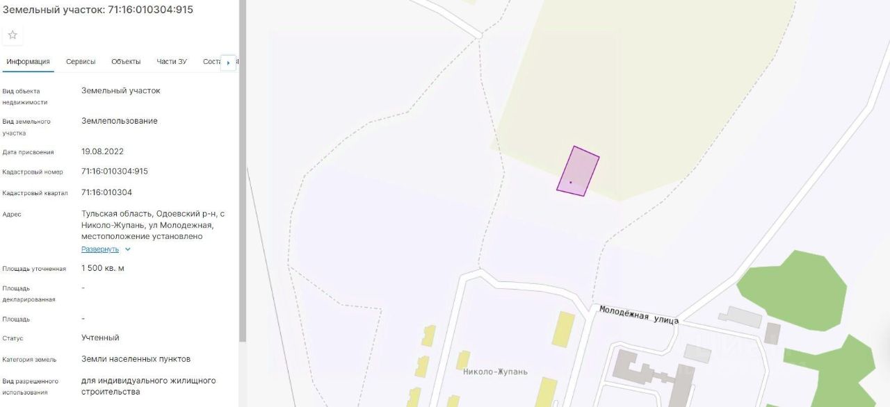 право заключения договора аренды земельного участка из земель населенных пунктов с кадастровым номером 71:16:010304:915, площадью 1500 кв.м, местоположение: Тульская область, Одоевский р-н, с. Николо-Жупань, ул. Молодежная, местоположение установлено относительно ориентира, расположенного в границах участка. Почтовый адрес ориентира: обл. Тульская р-н Одоевский, с. Николо- Жупань, ул. Молодежная, 250 м. на северо-запад от дома 79, вид разрешенного использования: для индивидуального жилищного строительства.