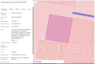 площадью 2479 кв.м, с кадастровым номером 71:22:020201:921, категория земель "Земли населенных пунктов", местоположение земельного участка: Тульская область, Щекинский район, муниципальное образование Яснополянское Щекинского района, д. Русиновка, западной стороной примыкает к земельному участку с кадастровым номером 71:22:020201:905, разрешенное использование для ведения личного подсобного хозяйства