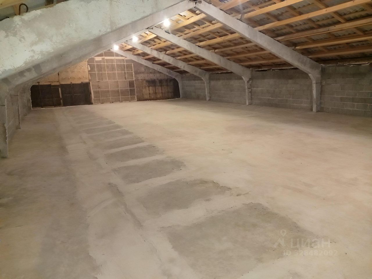 Площадь помещения 250 м2 (24 м х 10,4 м), высота потолка от 2,4 до 4,1 м.