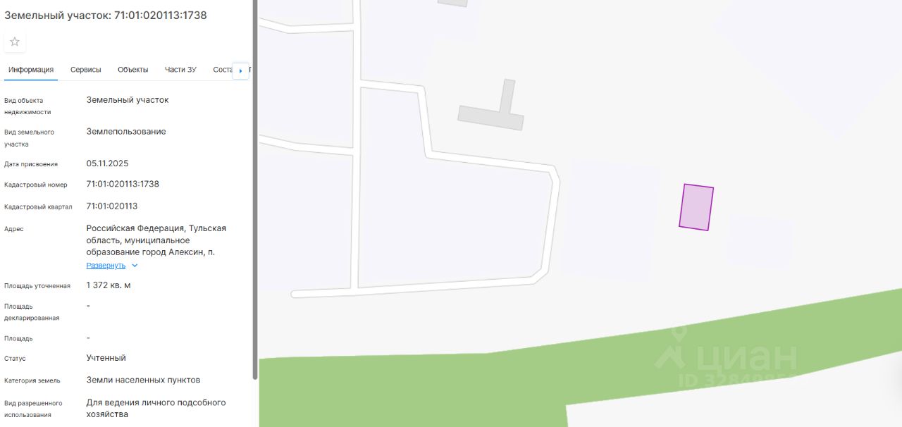 право заключения договора аренды земельного участка из земель населенных пунктов с кадастровым номером 71:01:020113:1738, площадь 1372 кв. м, местоположение: Тульская область, муниципальное образование город Алексин, п. Авангард, восточнее земельного участка с кадастровым номером 71:01:020113:164, вид разрешенного использования: для ведения личного подсобного хозяйства