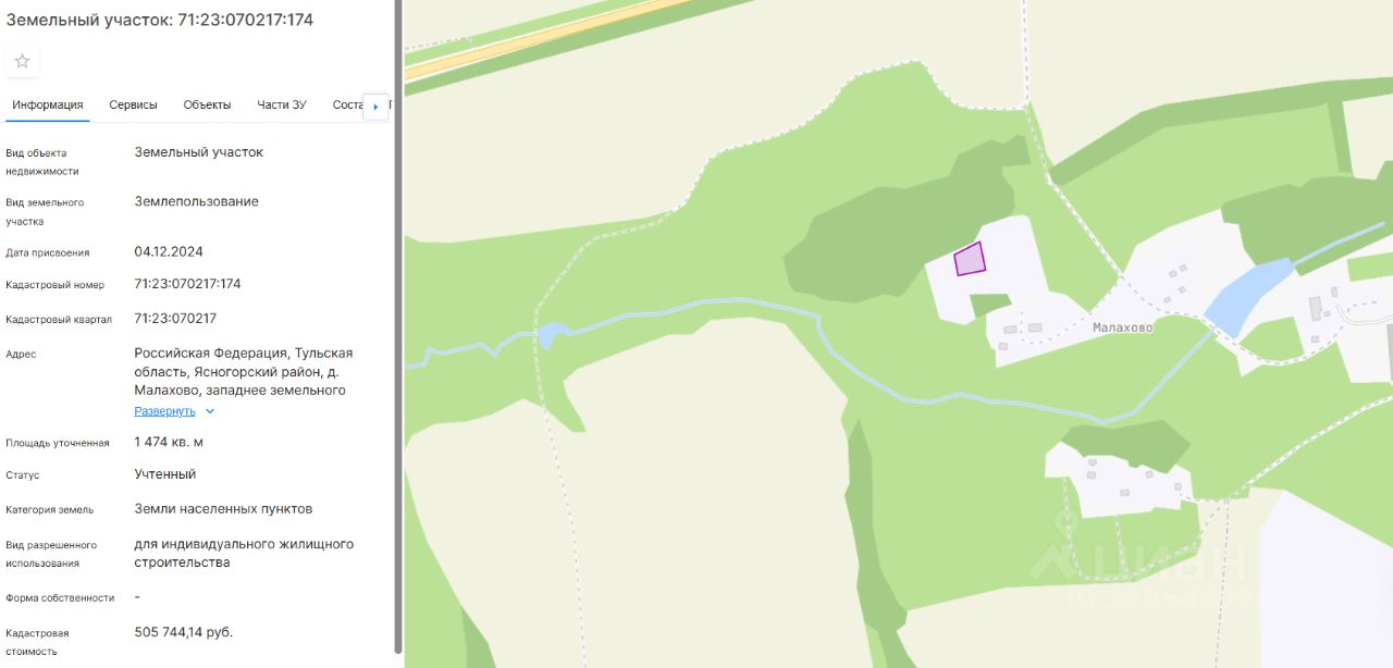 право заключения договора аренды земельного участка из земель населенных пунктов с кадастровым номером 71:23:070217:174, площадь 1 474 кв. м, местоположение: Тульская область, муниципальный район Ясногорский, сельское поселение Ревякинское, деревня Малахово, западнее земельного участка с кадастровым номером 71:23:070217:15, виды разрешенного использования: для индивидуального жилищного строительства