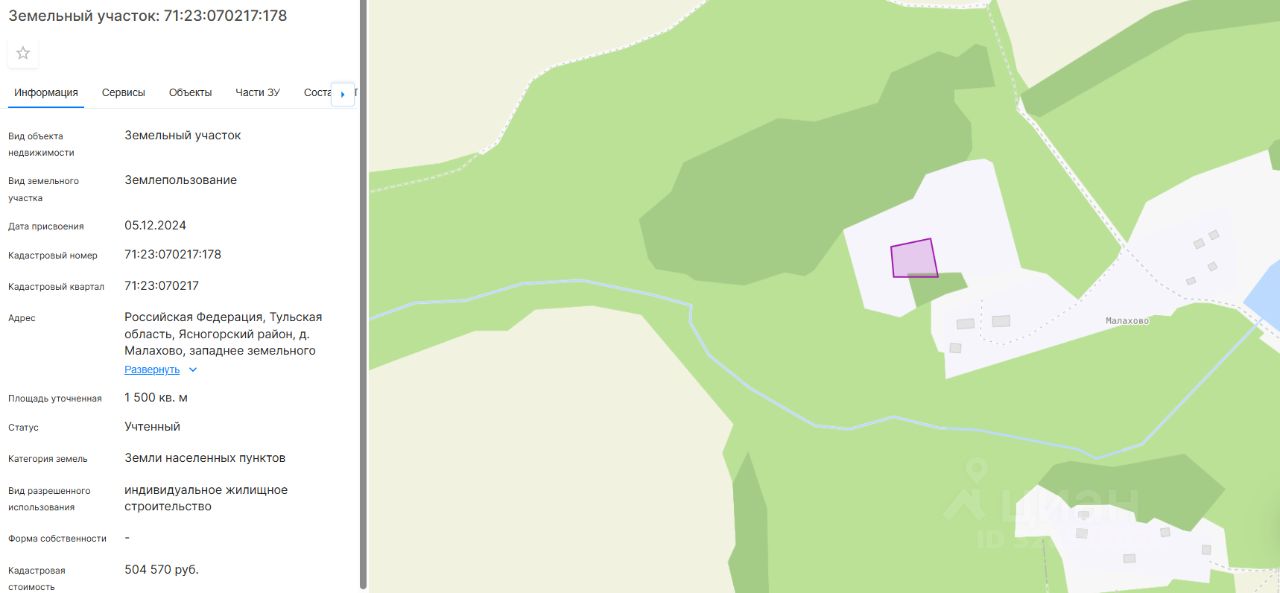 право заключения договора аренды земельного участка из земель населенных пунктов с кадастровым номером 71:23:070217:178, площадь 1 500 кв. м, местоположение: Тульская область, муниципальный район Ясногорский, сельское поселение Ревякинское, деревня Малахово, западнее земельного участка с кадастровым номером 71:23:070217:15, виды разрешенного использования: для индивидуального жилищного строительства