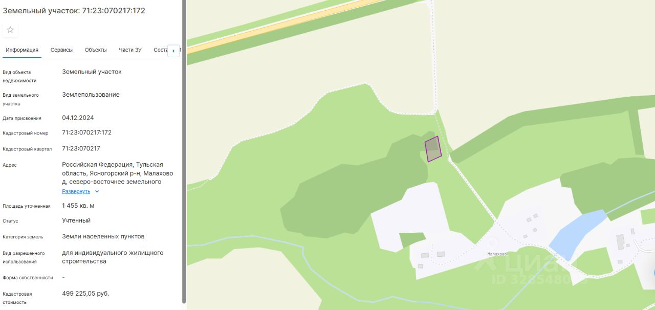 право заключения договора аренды земельного участка из земель населенных пунктов с кадастровым номером 71:23:070217:172, площадь 1 455 кв. м, местоположение: Тульская область, муниципальный район Ясногорский, сельское поселение Ревякинское, деревня Малахово, северо-восточнее земельного участка с кадастровым номером 71:23:070217:55, виды разрешенного использования: для индивидуального жилищного строительства