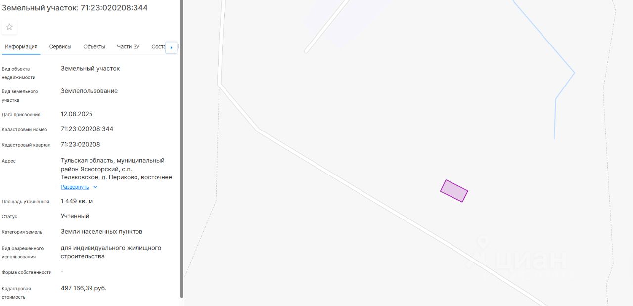 право заключения договора аренды земельного участка из земель населенных пунктов с кадастровым номером 71:23:020208:344, площадь 1449 кв. м, местоположение: Тульская область, муниципальный район Ясногорский, с.п. Теляковское, д. Периково, восточнее земельного участка с кадастровым номером 71:23:020208:297, виды разрешенного использования: для индивидуального жилищного строительства