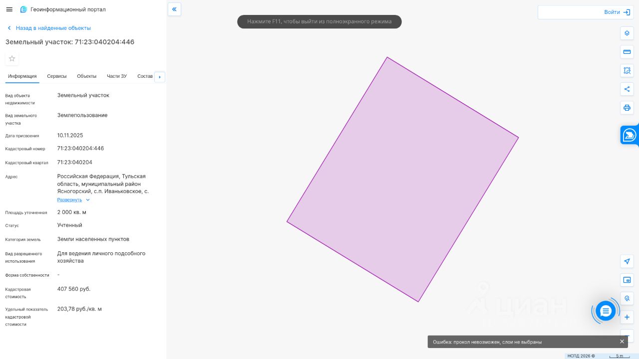 Право заключения договора аренды земельного участка из земель населенных пунктов с кадастровым номером 71:23:040204:446 площадью 2000 кв. м, местоположение: Российская Федерация, Тульская область, муниципальный район, Ясногорский с.п. Иваньковское, с Кузьмищево, южнее земельного участка с кадастровым номером 71:23:040204:243, вид разрешенного использования: для ведения личного подсобного хозяйства.