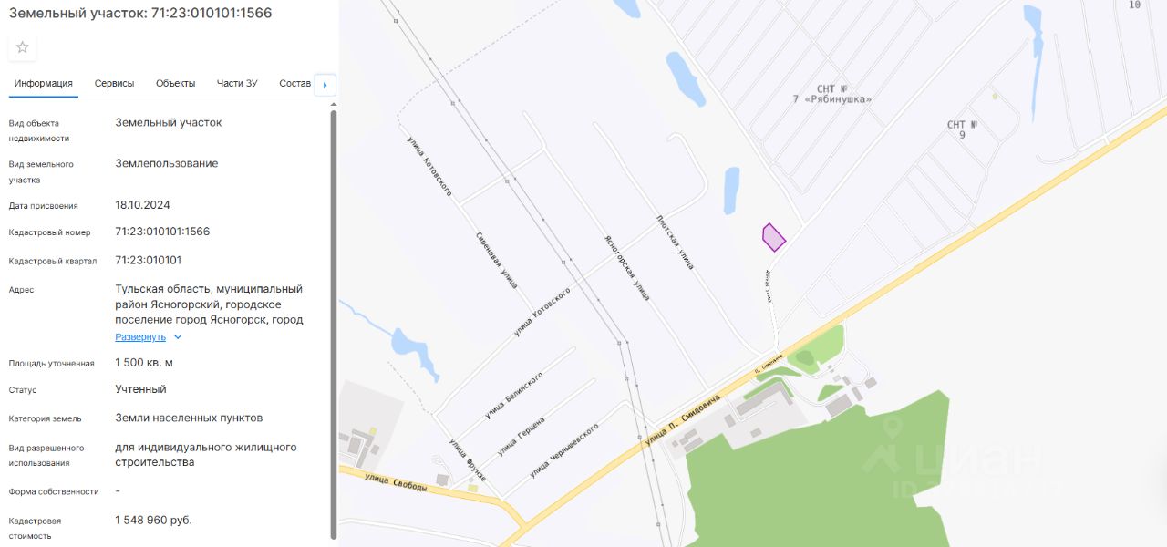 право заключения договора аренды земельного участка из земель населенных пунктов с кадастровым номером 71:23:010101:1566, площадь 1500 кв. м, местоположение: Тульская область, муниципальный район Ясногорский, городское поселение город Ясногорск, город Ясногорск, ул. П. Смидовича, юго-западнее земельного участка с кадастровым номером 71:23:010101:957, виды разрешенного использования: для индивидуального жилищного строительства