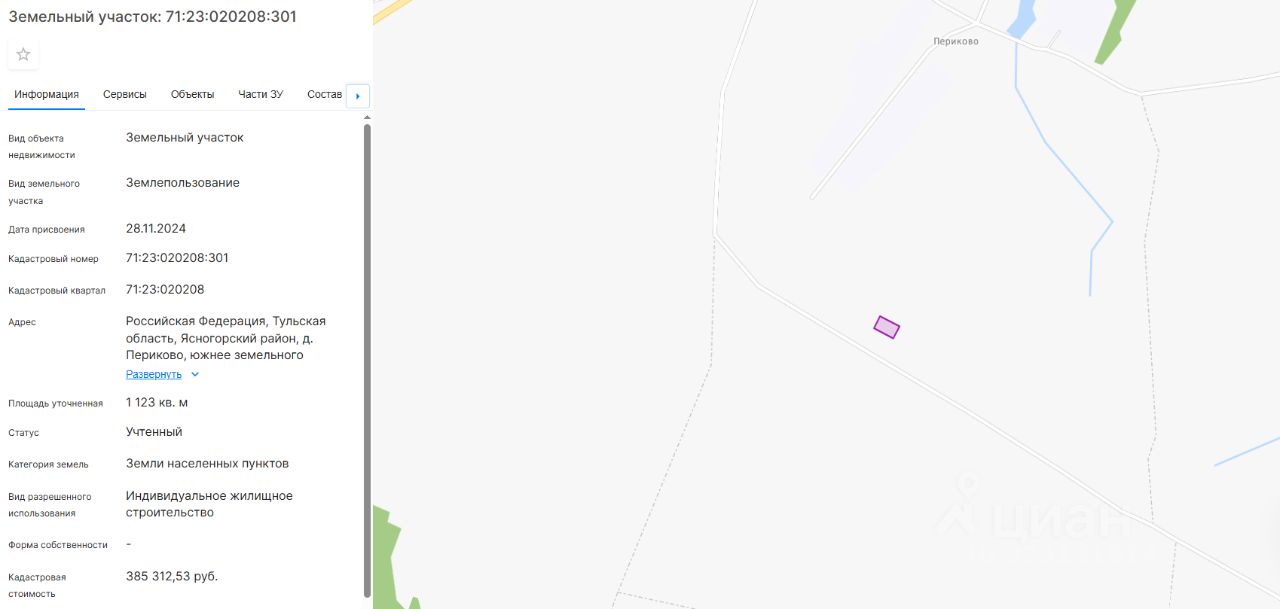 право заключения договора аренды земельного участка из земель населенных пунктов с кадастровым номером 71:23:020208:301, площадь 1123 кв. м, местоположение: Тульская область, муниципальный район Ясногорский, сельское поселение Теляковское, д. Периково, южнее земельного участка с кадастровым номером 71:23:020208:46, виды разрешенного использования: для индивидуального жилищного строительства