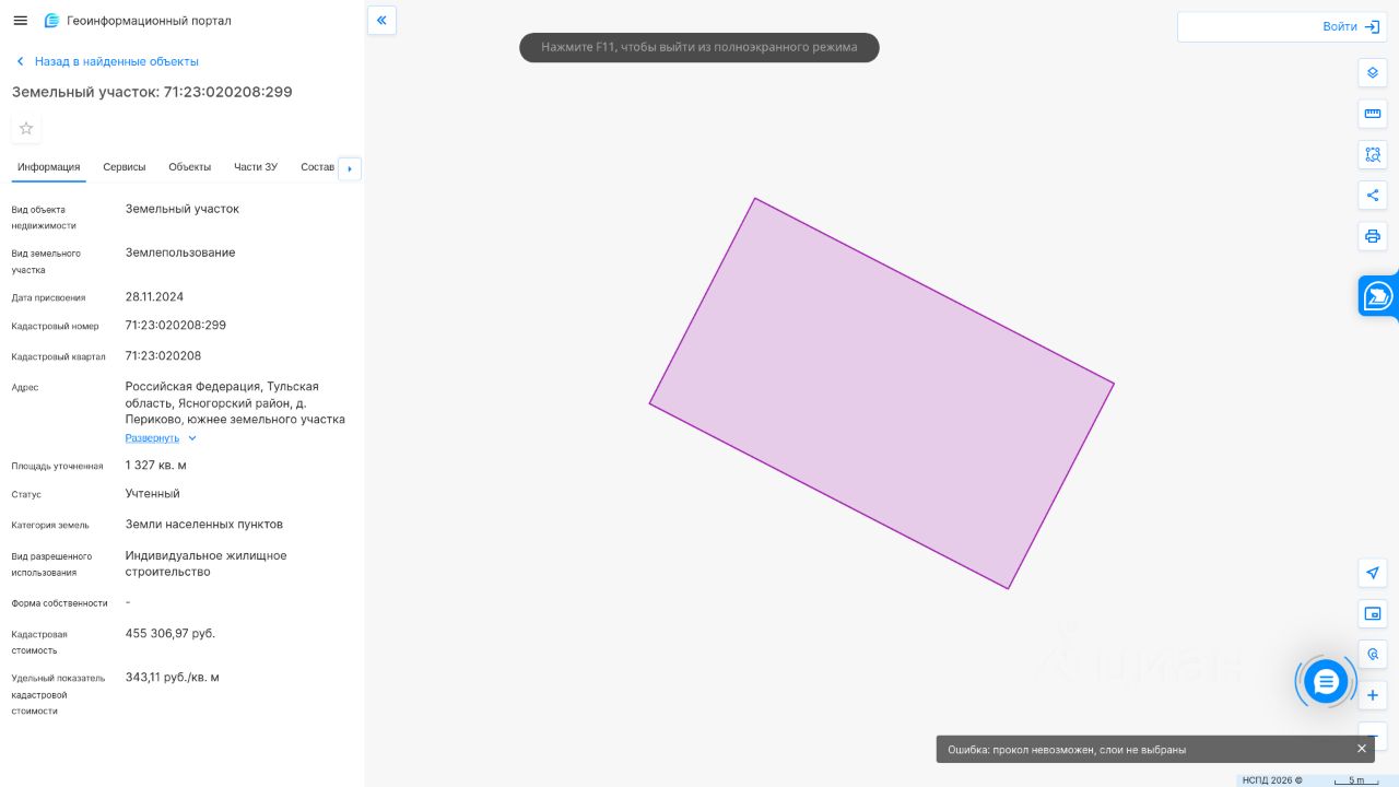 Право заключения договора аренды земельного участка из земель населенных пунктов с кадастровым номером 71:23:020208:299, площадь 1 327 кв. м, местоположение: Тульская область, муниципальный район Ясногорский, с. п. Теляковское, д. Периково, южнее земельного участка с кадастровым номером 71:23:020208:46, виды разрешенного использования: для индивидуального жилищного строительства.