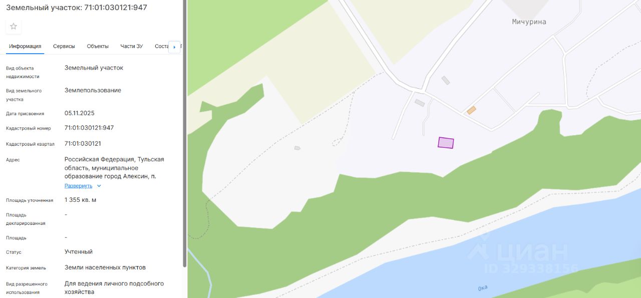 право заключения договора аренды земельного участка из земель населенных пунктов с кадастровым номером 71:01:030121:947, площадь 1355 кв. м, местоположение: Тульская область, муниципальное образование город Алексин, п. Мичурина, восточнее земельного участка с кадастровым номером 71:01:030121:638, вид разрешенного использования: для ведения личного подсобного хозяйства