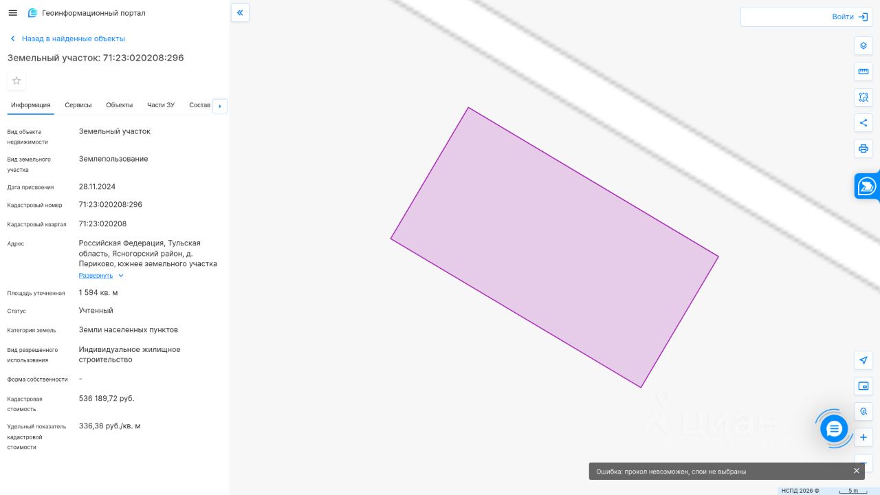 право заключения договора аренды земельного участка из земель населенных пунктов с кадастровым номером 71:23:020208:296, площадь 1 594 кв. м, местоположение: Тульская область, муниципальный район Ясногорский, с. п. Теляковское, д. Периково, южнее земельного участка с кадастровым номером 71:23:020208:46, виды разрешенного использования: для индивидуального жилищного строительства..