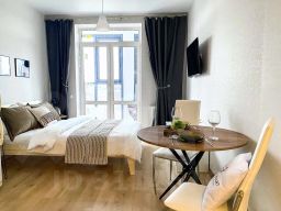 Данная квартира включает в себя двуспальную кровать, технику (холодильник, плита, стиральная машина, телевизор, фен, утюг, Wi-Fi) и все для комфорта (постельное белье, полотенца, средства гигиены).
