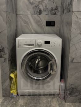 Полный комплект бытовой техники, включая робот пылесос, стиральную машину, встроенную микроволновую печь, утюг, полный набор посуды, кухонной утвари и средств для уборки.