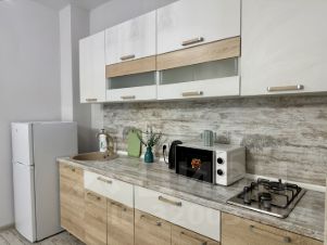 Оборудованной кухней (холодильник, варочная панель, микроволновая печь, чайник, посуда, необходимая для того, чтобы приготовить себе полноценные завтрак, обед и ужин)