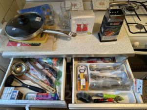 В квартире есть новый телевизор и новая стиральная машинка, также новая вся посуда.