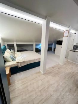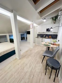 Уютная и очень тёплая студия, где есть все необходимое для комфортного проживания. Просторная кухня-гостиная, с кухонной зоной, обеденным столом и всей необходимой техникой и посудой. Двуспальная кровать (180см) и матрас 160см