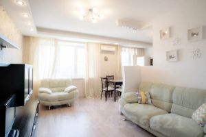 В квартире есть всё необходимое: гостиная, спальня, закрытый балкон, кухня с обеденной зоной. Мы предоставляем полотенца, чистое постельное белье и другие удобства, такие как: