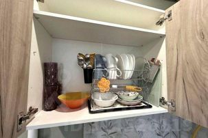 Полностью укомплектованная кухня (микроволновка, чайник, плита, холодильник, вся необходимая посуда)