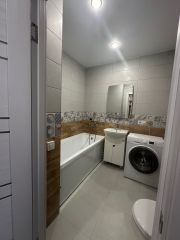 Просторный совместный санузел "в плитке", полноценная огромная ванная, стиральная машинка, унитаз-инсталляция.