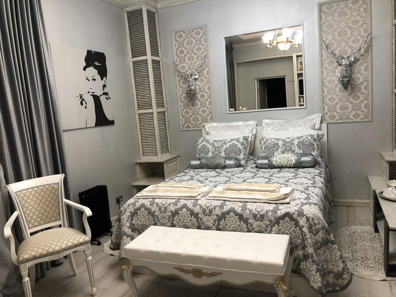 Номер Люкс выполнен в классическом стиле. Большая комната в нежно сером цвете. Дизайнерская люстра и подсветка с пультом управления во всем номере придаст романтического настроения нашим гостям. Большая двухспальная кровать с удобным матрасом. Телевизор со множеством развлекательных каналов. Белоснежные халаты и тапочки.
