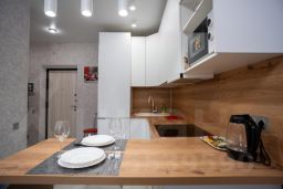 Для удобства гостей в апартаментах есть все необходимое для комфортного проживания: двухспальная кровать, раскладной диван, полотенца, чистое постельное белье, полностью оснащенная кухня, TV, Wi-Fi, посуда, фен, утюг и другие удобства.