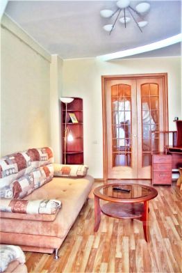 В апартаментах: двуспальный диван, чистое постельное белье, полотенца, плазменный телевизор, Wi-Fi, холодильник, плита, чайник, стиральная машина /утюг/ гладильня доска/сушилка для белья, ванна/душ, оборудованная кухня, посуда, всё для приготовления пищи.